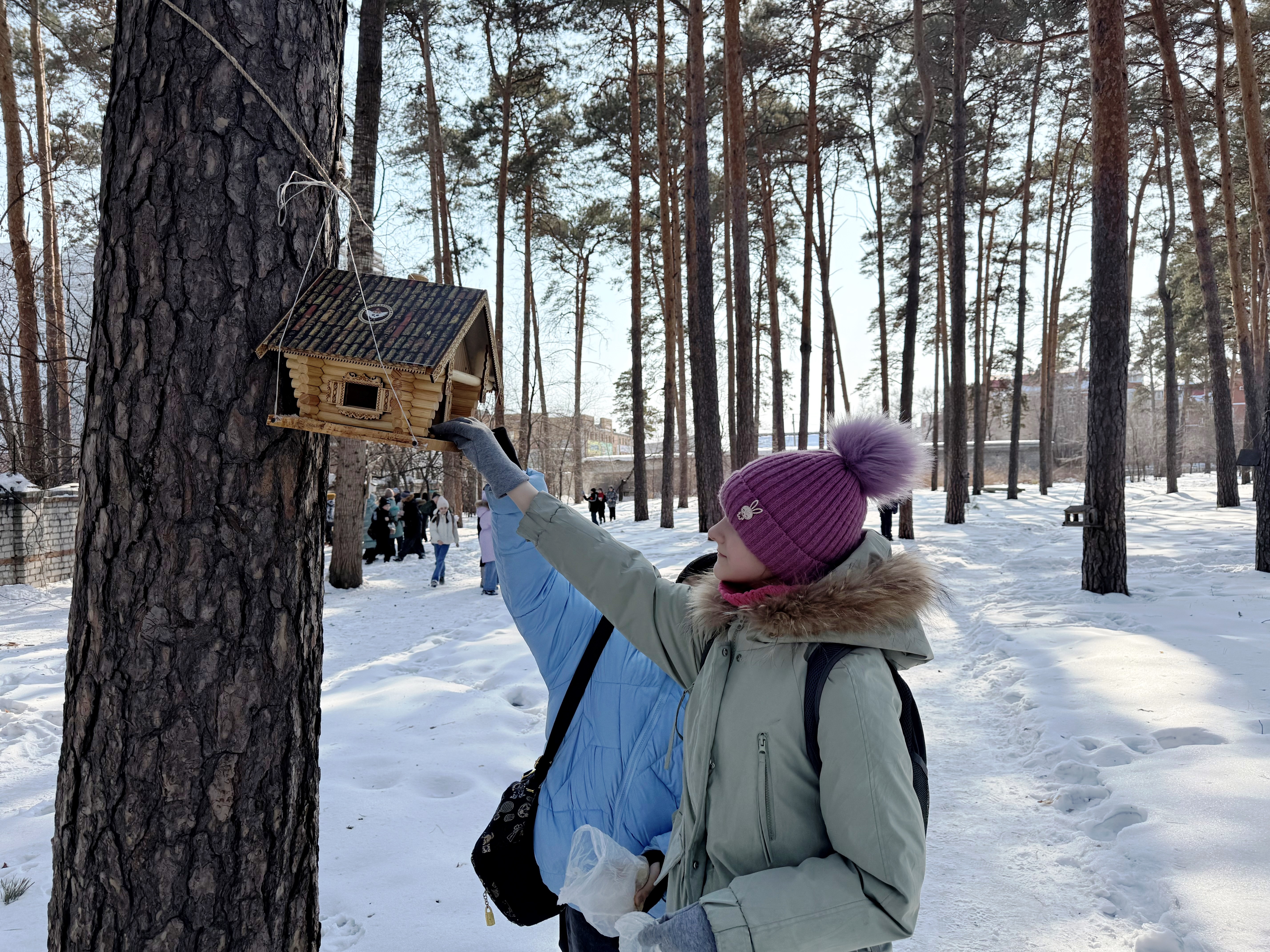 В марте в парках Дзержинский, городской и сквере "Александровский" прошли экологические акции «Угощаем птиц и белок».